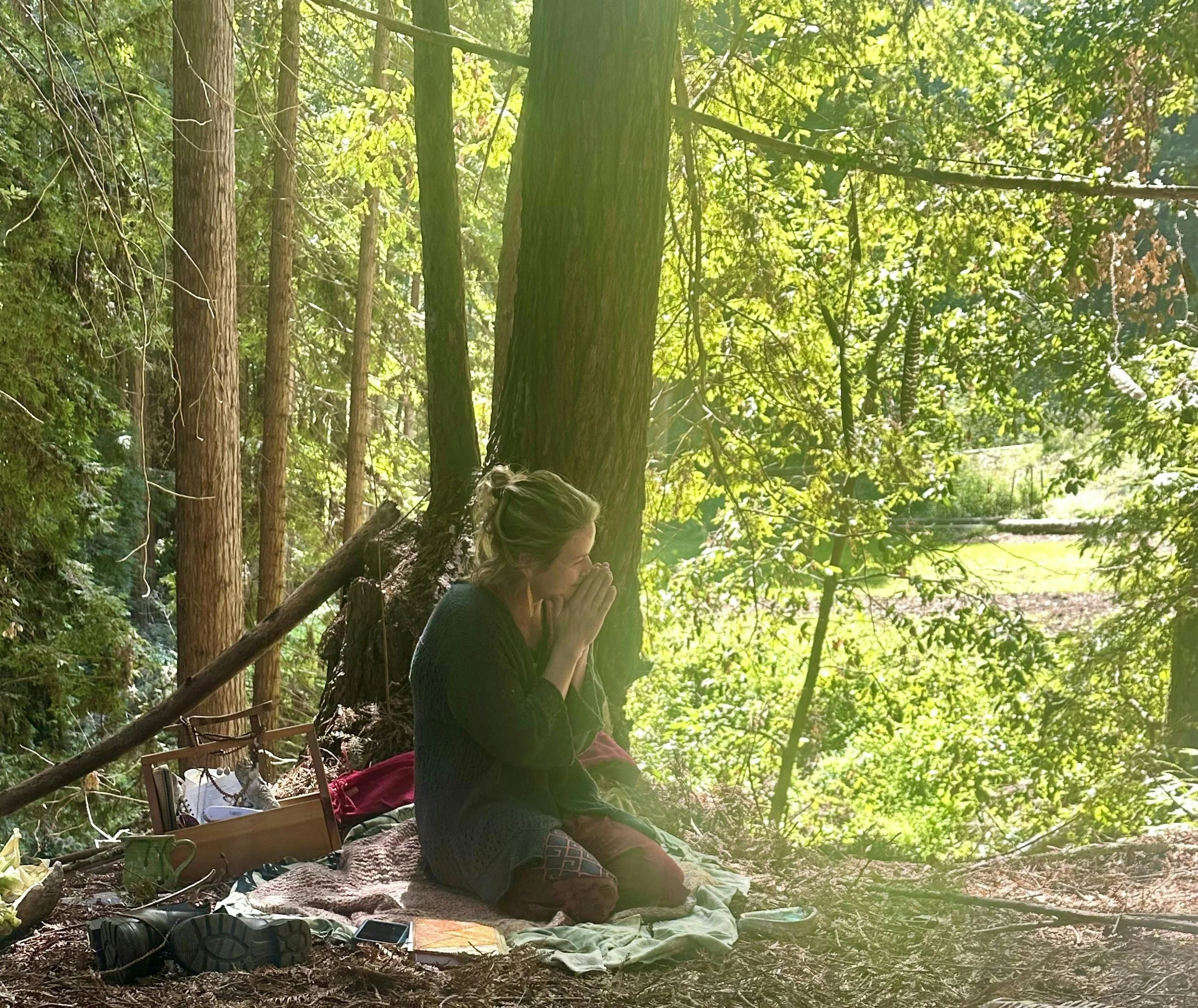 Every Earth CHURCH we gather under the redwoods for a morning of journaling/reflection, land acknowledgement, poetry, silent sitting meditation, walking meditation/conversation with nature and community Earth Altar creation. Sometimes we have sound healing, movement and embodiment practices or another offering from a community member. There is gentle guidance to help create the arc and guide our time and enough spaciousness to allow for what wants to emerge.